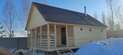 Баня 6×6 с террасой 3×6 под ключ. Общий размер 6×9